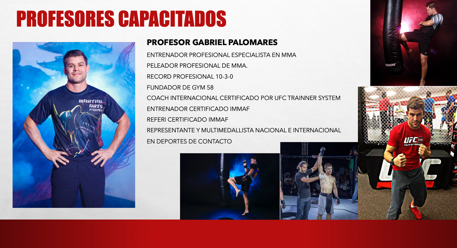 El Profesor Gabriel Palomares es un destacado entrenador y peleador profesional de artes marciales mixtas (MMA) originario de Guadalajara, Jalisco, México. A lo largo de su carrera profesional en MMA, ha acumulado un récord de 2 victorias y 2 derrotas. TAPOLOGY